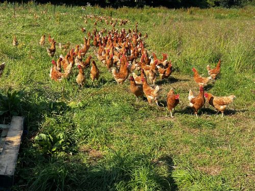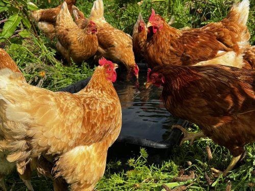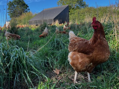 For the majority of the year, our hens live outdoors on pasture and are moved regularly. This rotation protects the ground, spreads fertility evenly and prevents soil damage.